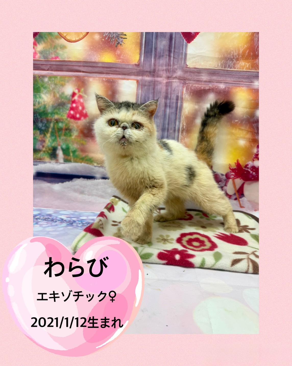 掲載日 2025.12.21 ユアペティア鎌ヶ谷店 マイペースな女の子わらび 名前 わらび 品種 エキゾチック 性別 女の子 生年月日 21/1/12 ワクチン接種 済み 避妊去勢手術 未 狂犬病予防接種 猫のため不要 健康診断 あり ノミマダニ予防 済み マイクロチップ 装着済み 犬:フィラリア検査 猫:エイズ、白血病検査 陰性 健康上の特記事項 25/12/21現在体重2.5㎏ < 前のページへ 次のページへ >