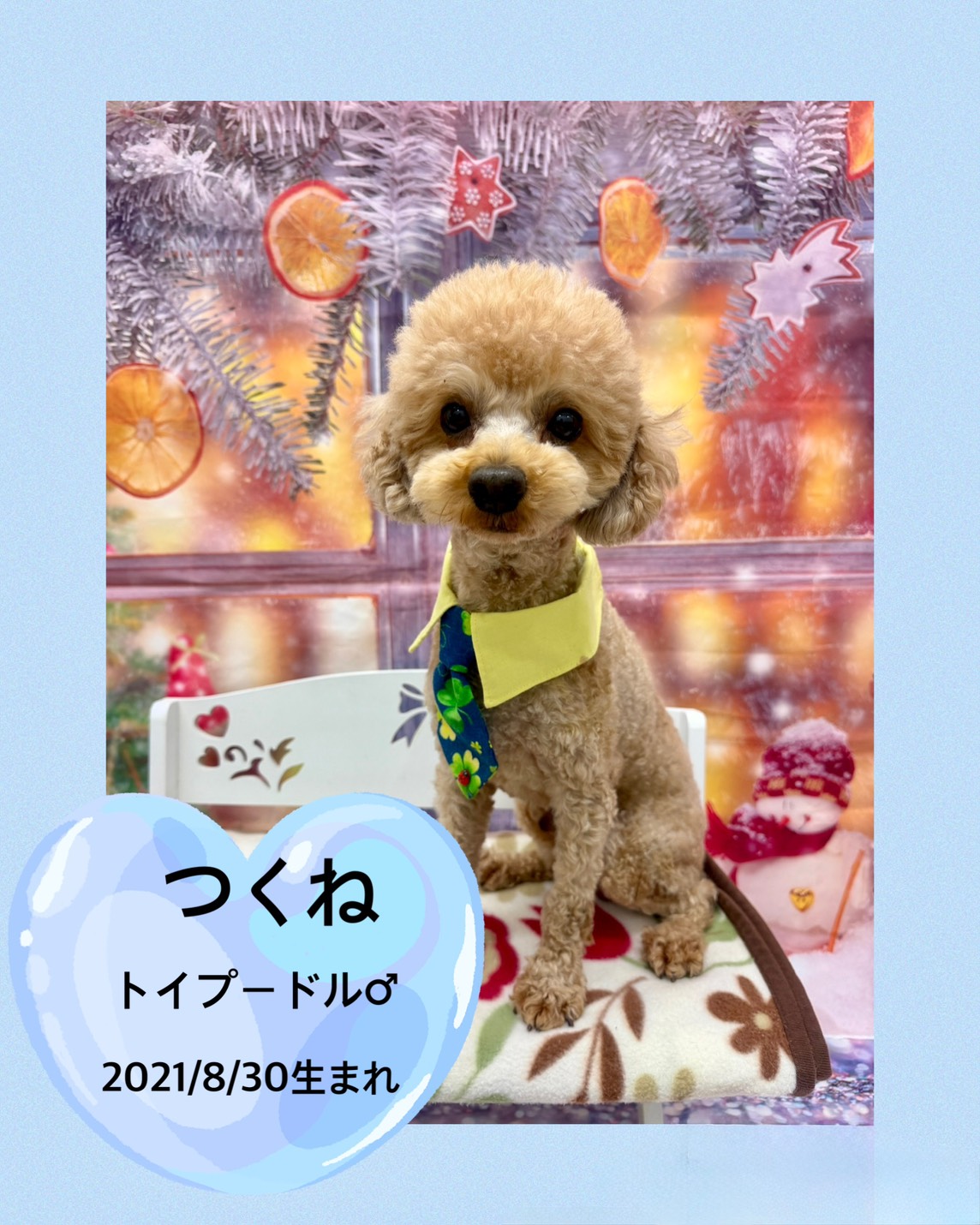 掲載日 2025.12.21 ユアペティア鎌ヶ谷店 明るく元気いっぱいな男の子つくね 名前 つくね 品種 トイプードル 性別 男の子 生年月日 21/8/30 ワクチン接種 未 避妊去勢手術 未 狂犬病予防接種 済み 健康診断 あり ノミマダニ予防 済み マイクロチップ 装着済み 犬:フィラリア検査 猫:エイズ、白血病検査 陰性 健康上の特記事項 パテラ左G2右G1、停留精巣・鼠径左あり 25/12/21現在体重3.96㎏ < 前のページへ 次のページへ >