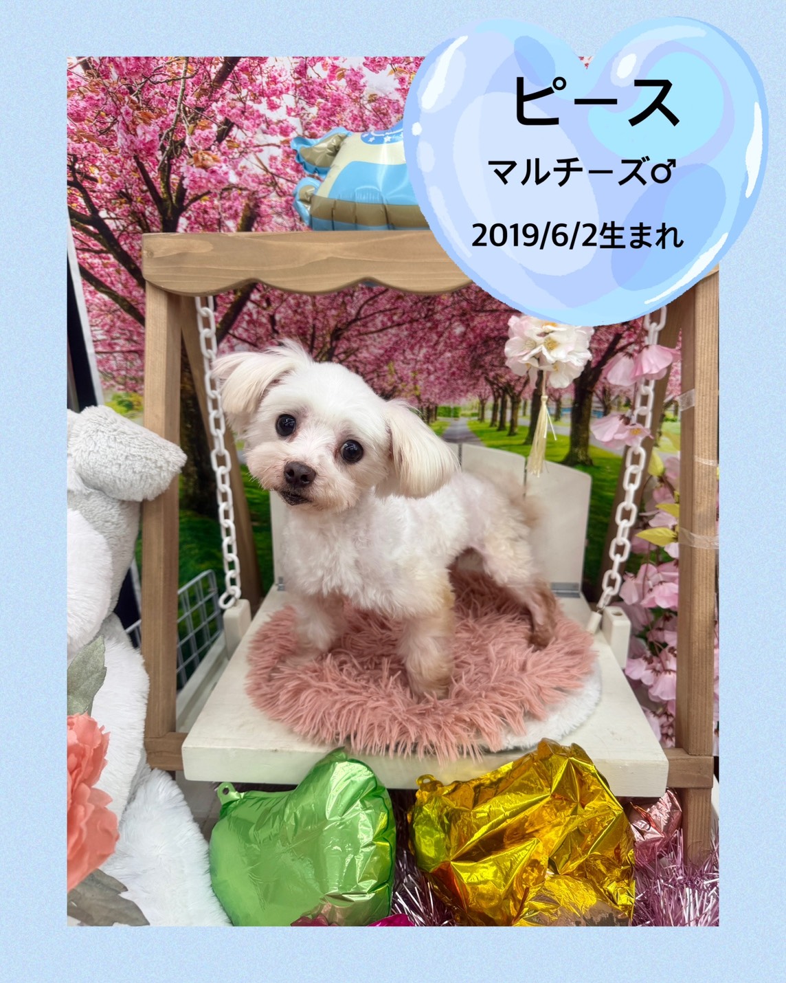 掲載日 2026.03.27 ユアペティア鎌ヶ谷店 ちょっぴりシャイな男の子ピース 名前 ピース 品種 マルチーズ 性別 男の子 生年月日 2019/6/2 ワクチン接種 未 避妊去勢手術 未 狂犬病予防接種 済み 健康診断 あり ノミマダニ予防 済み マイクロチップ 装着済み 犬:フィラリア検査 猫:エイズ、白血病検査 陰性 健康上の特記事項 パテラ左右G2 2026/03/27現在体重2.7㎏ 少し怖がりな性格ですが慣れれば問題なく過ごせる可愛い子です ! < 前のページへ 次のページへ >