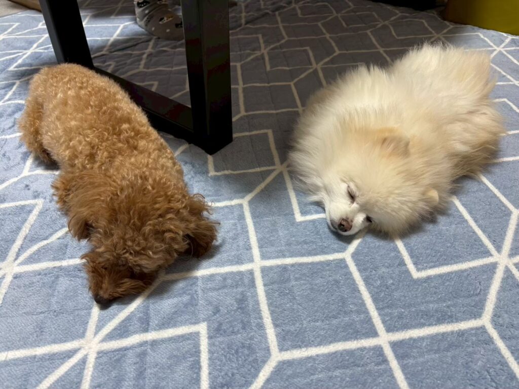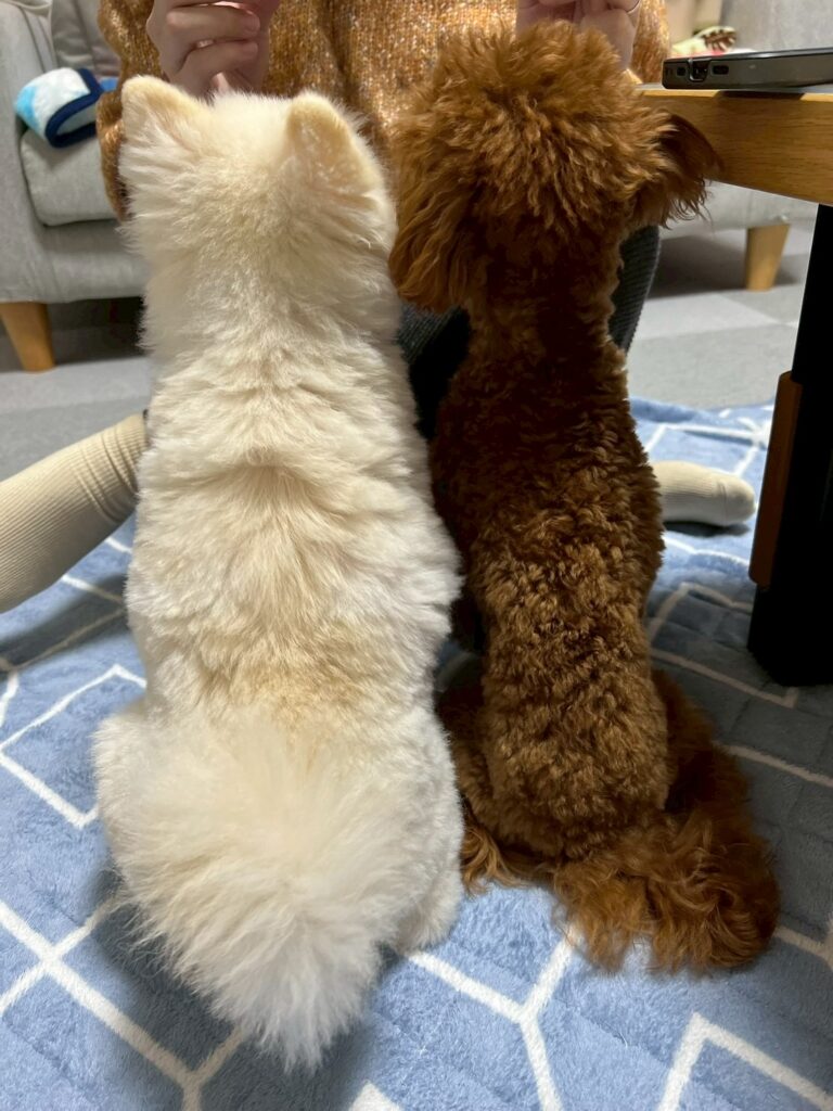 可愛い後ろ姿♪仲良く距離を取って寝てます