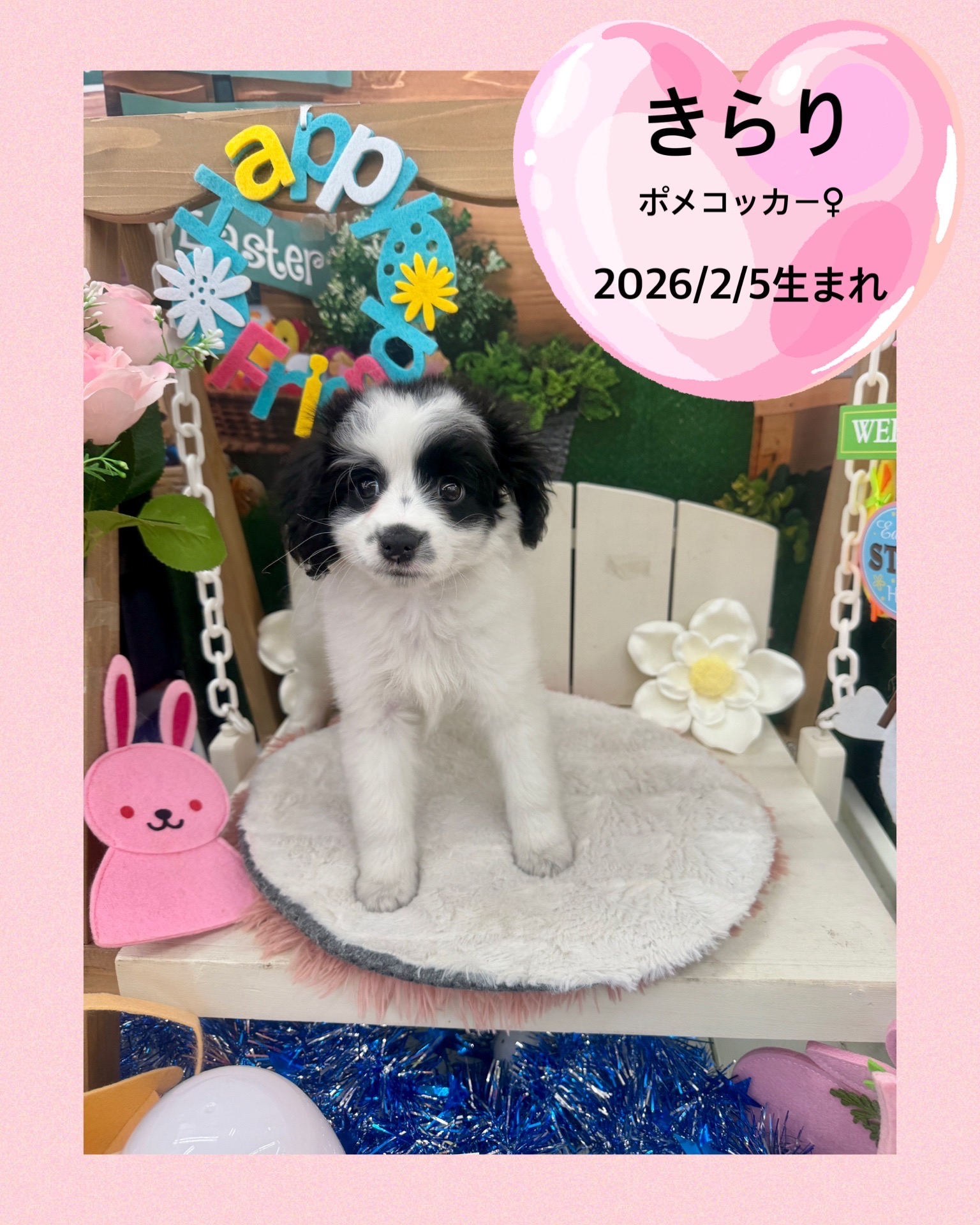 掲載日 2026.04.26 ユアペティア鎌ヶ谷店 愛想を振りまいてくれる女の子きらり 名前 きらり 品種 ポメラニアン×アメリカンコッカースパニエル 性別 女の子 生年月日 2026/2/5 ワクチン接種 済み 避妊去勢手術 未 狂犬病予防接種 未 健康診断 あり ノミマダニ予防 済み マイクロチップ 装着済み 犬:フィラリア検査 猫:エイズ、白血病検査 陰性 健康上の特記事項 2026/4/26現在体重1.45㎏ とても人懐っこい性格の女の子です❤❤ 素敵なご縁に繋がりますように✨ < 前のページへ 次のページへ >